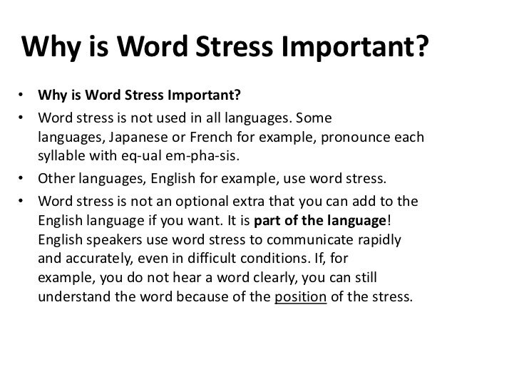 It is equally important to remember that the unstressed syllables of a word have the opposite features of a stressed syllable. To communicate clearly when you are speaking in English its important to stress the correct syllables in each word. When applied to engineering stress refers to the applied load divided by the original cross-sectional area of a material.